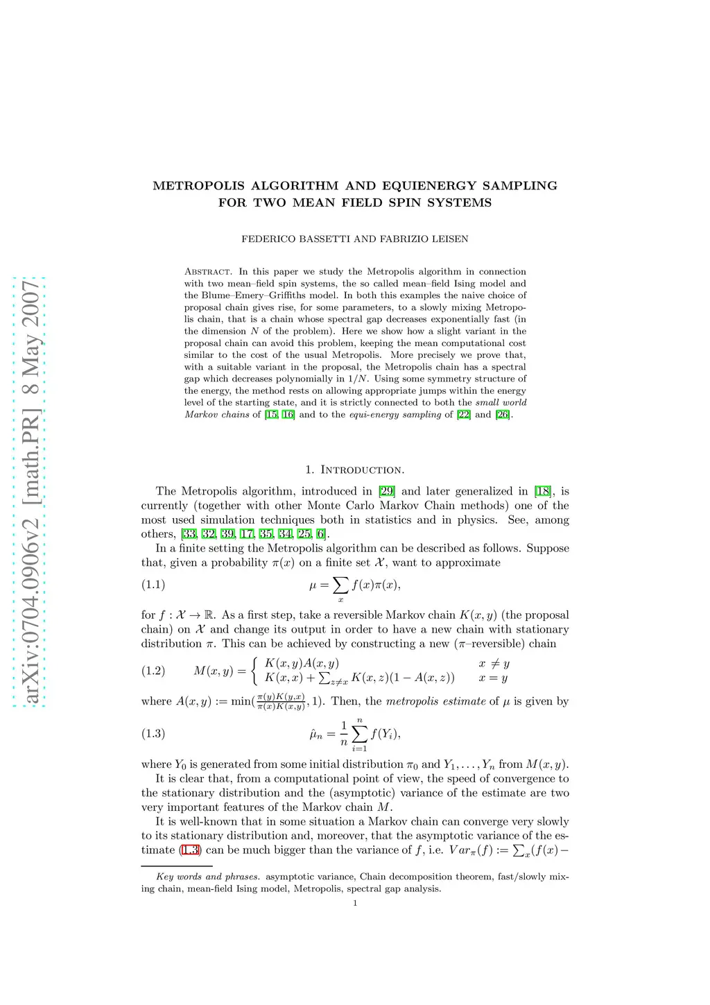 Metropolis algorithm and equienergy sampling for two mean field spin
