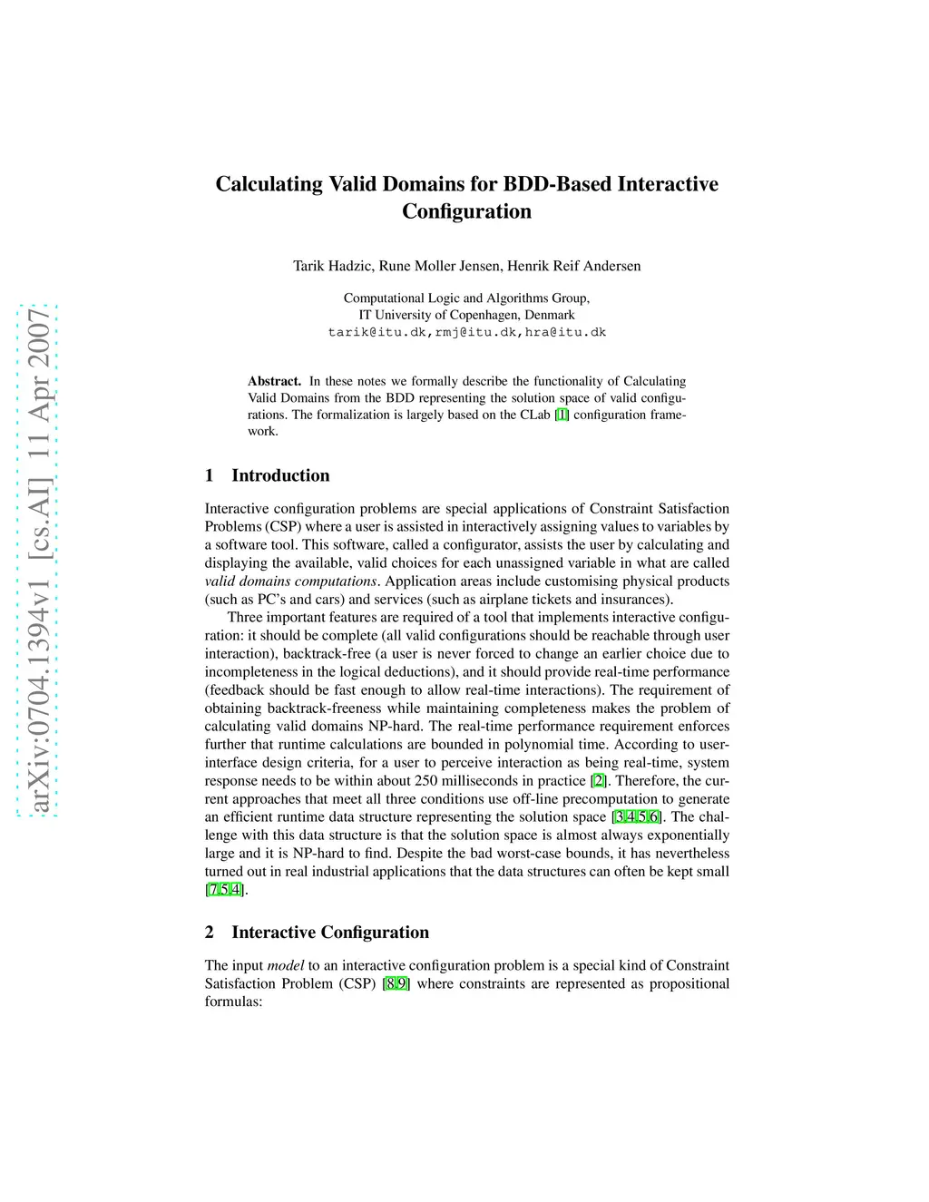 In these notes we formally describe the functionality of Calculating Valid Domains from the BDD representing the solution space of valid configurations. The formalization is largely based on the CLab configuration framework.