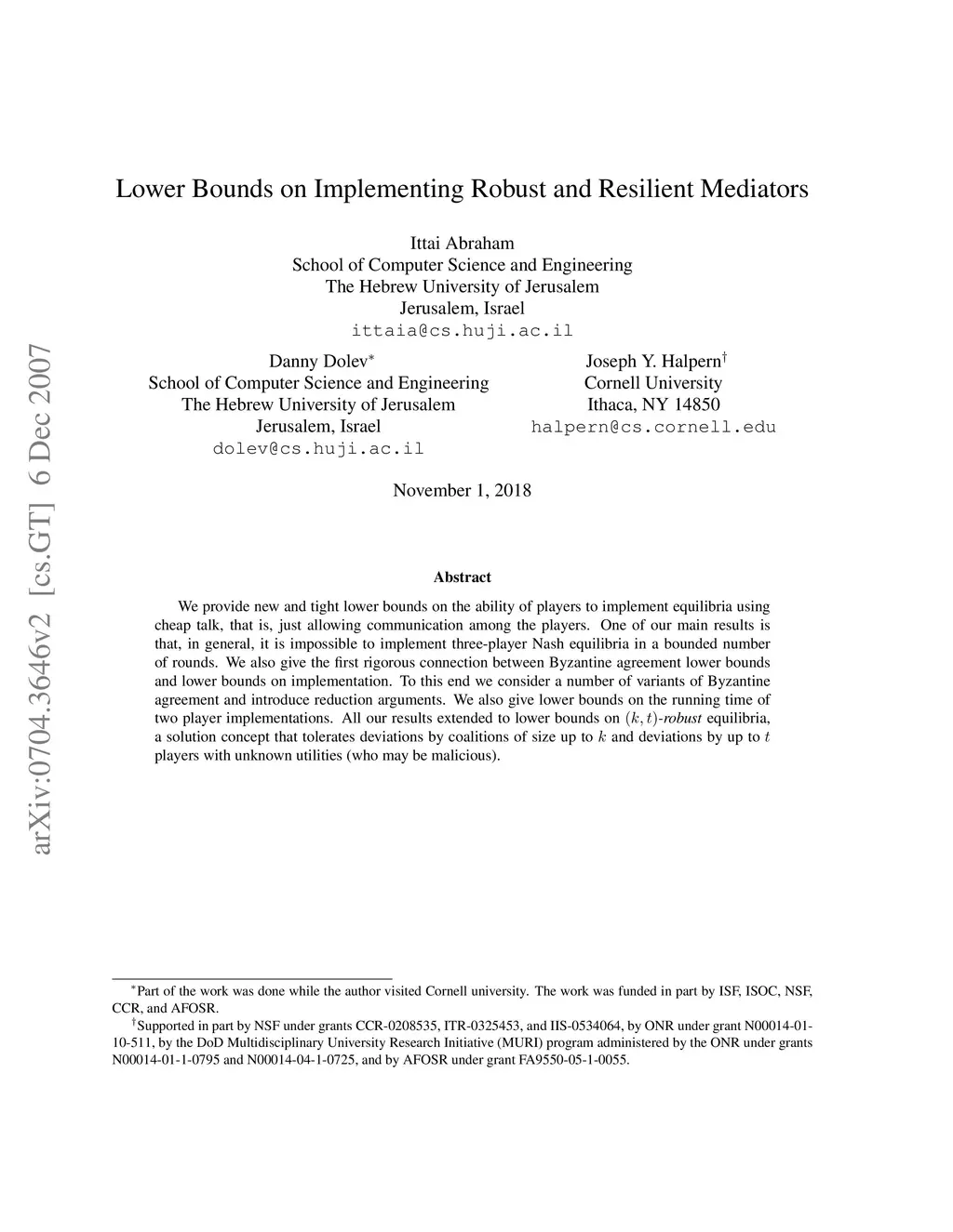 We consider games that have (k,t)-robust equilibria when played with a mediator, where an equilibrium is (k,t)-robust if it tolerates deviations by coalitions of size up to k and deviations by up to players with unknown utilities. We prove lower bounds that match upper bounds on the ability to implement such mediators using cheap talk (that is, just allowing communication among the players). The bounds depend on (a) the relationship between k, t, and n, the total number of players in the system; (b) whether players know the exact utilities of other players; (c) whether there are broadcast channels or just point-to-point channels; (d) whether cryptography is available; and (e) whether the game has a $k+t)-punishment strategy; that is, a strategy that, if used by all but at most players, guarantees that every player gets a worse outcome than they do with the equilibrium strategy.