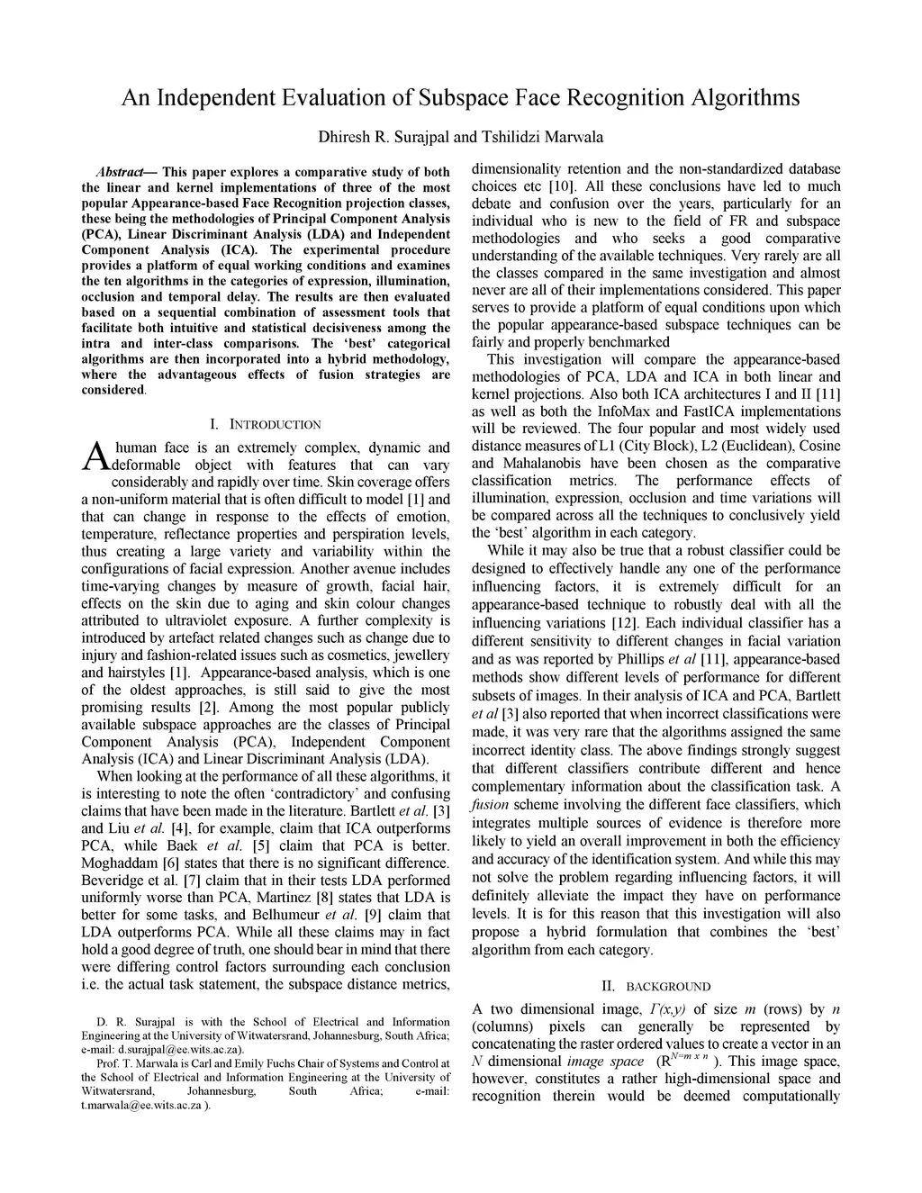 An Independent Evaluation of Subspace Face Recognition Algorithms
