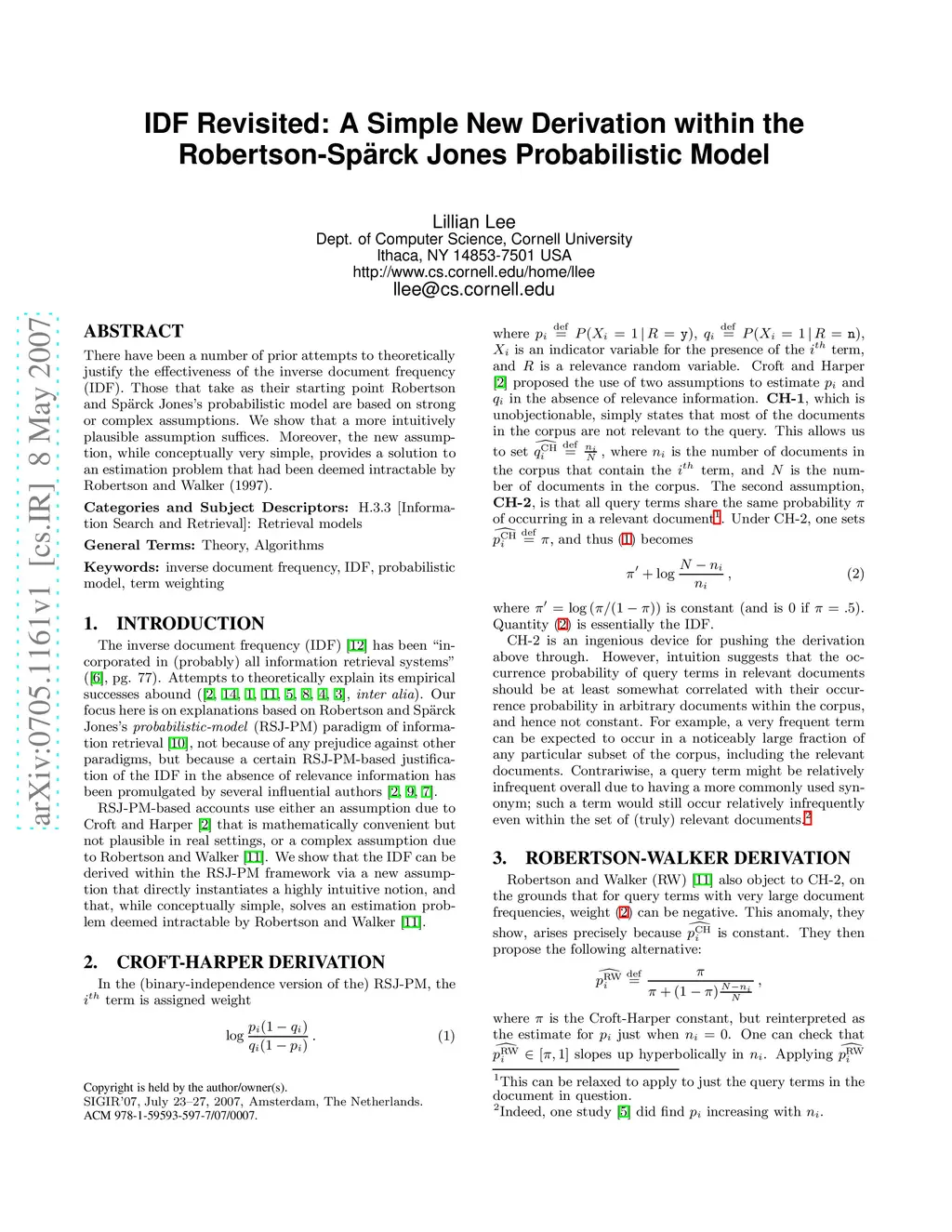 IDF revisited: A simple new derivation within the Robertson-Spärck