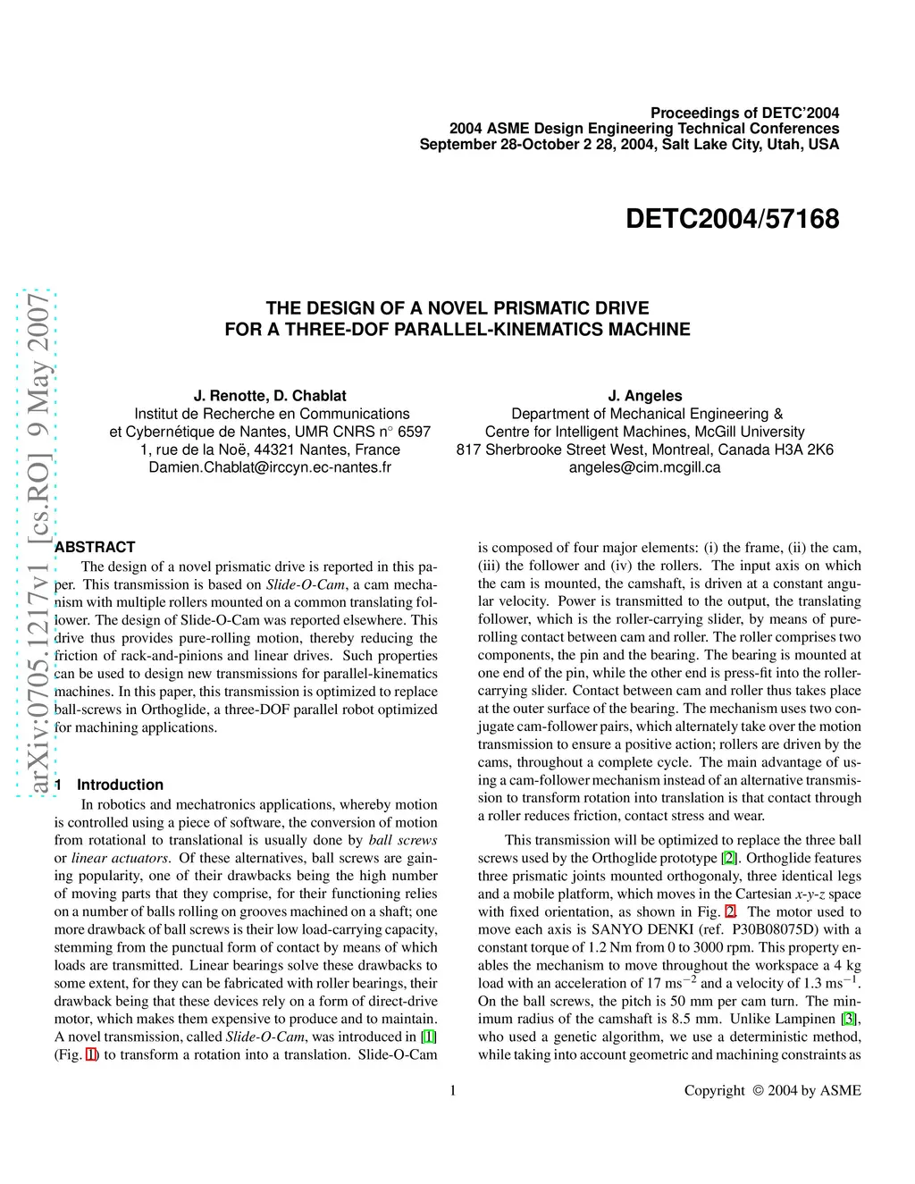 The design of a novel prismatic drive is reported in this paper. This transmission is based on Slide-O-Cam, a cam mechanism with multiple rollers mounted on a common translating follower. The design of Slide-O-Cam was reported elsewhere. This drive thus provides pure-rolling motion, thereby reducing the friction of rack-and-pinions and linear drives. Such properties can be used to design new transmissions for parallel-kinematics machines. In this paper, this transmission is optimized to replace ball-screws in Orthoglide, a three-DOF parallel robot optimized for machining applications.