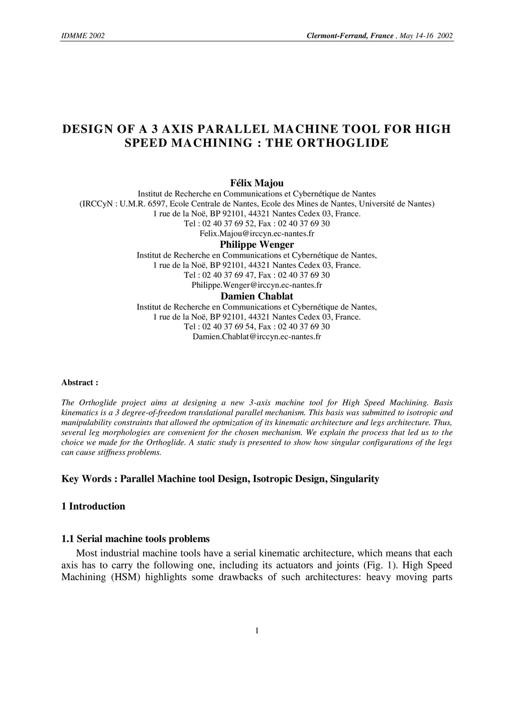 Design of a 3 Axis Parallel Machine Tool for High Speed Machining: The