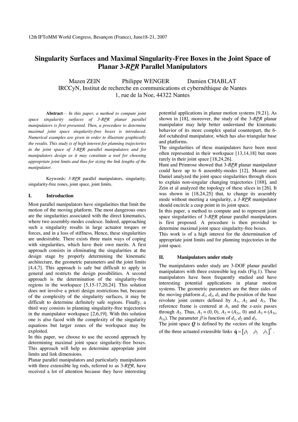 Singularity Surfaces and Maximal Singularity-Free Boxes in the Joint