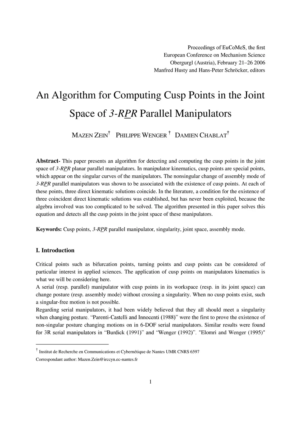 This paper presents an algorithm for detecting and computing the cusp points in the joint space of 3-RPR planar parallel manipulators. In manipulator kinematics, cusp points are special points, which appear on the singular curves of the manipulators. The nonsingular change of assembly mode of 3-RPR parallel manipulators was shown to be associated with the existence of cusp points. At each of these points, three direct kinematic solutions coincide. In the literature, a condition for the existence of three coincident direct kinematic solutions was established, but has never been exploited, because the algebra involved was too complicated to be solved. The algorithm presented in this paper solves this equation and detects all the cusp points in the joint space of these manipulators.