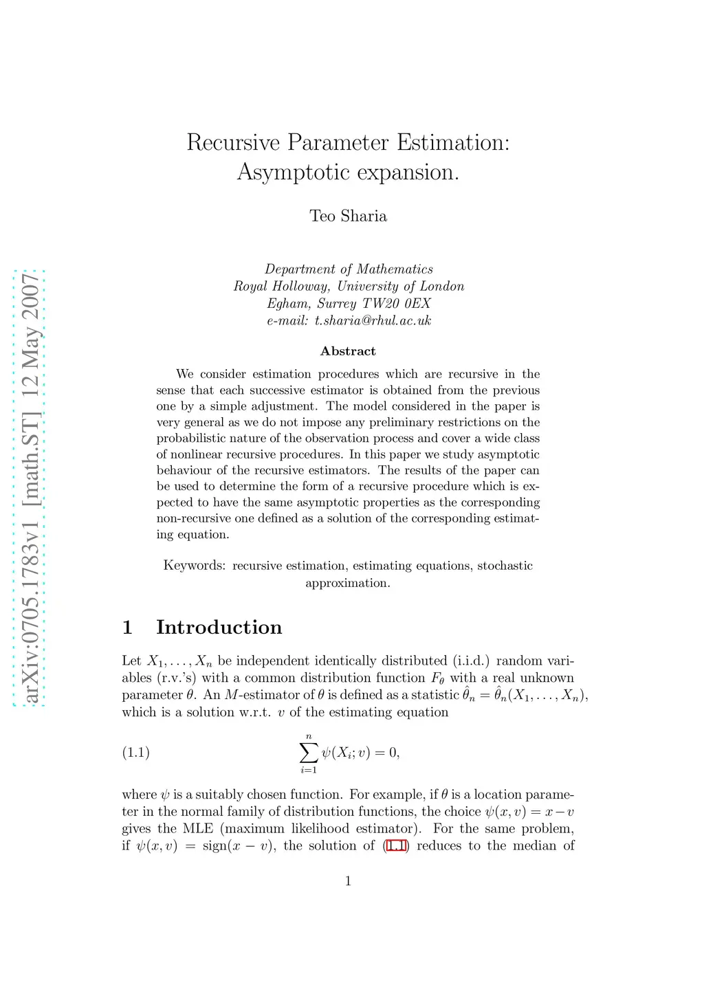 We consider estimation procedures which are recursive in the sense that each successive estimator is obtained from the previous one by a simple adjustment. The model considered in the paper is very general as we do not impose any preliminary restrictions on the probabilistic nature of the observation process and cover a wide class of nonlinear recursive procedures. In this paper we study asymptotic behaviour of the recursive estimators. The results of the paper can be used to determine the form of a recursive procedure which is expected to have the same asymptotic properties as the corresponding non-recursive one defined as a solution of the corresponding estimating equation.