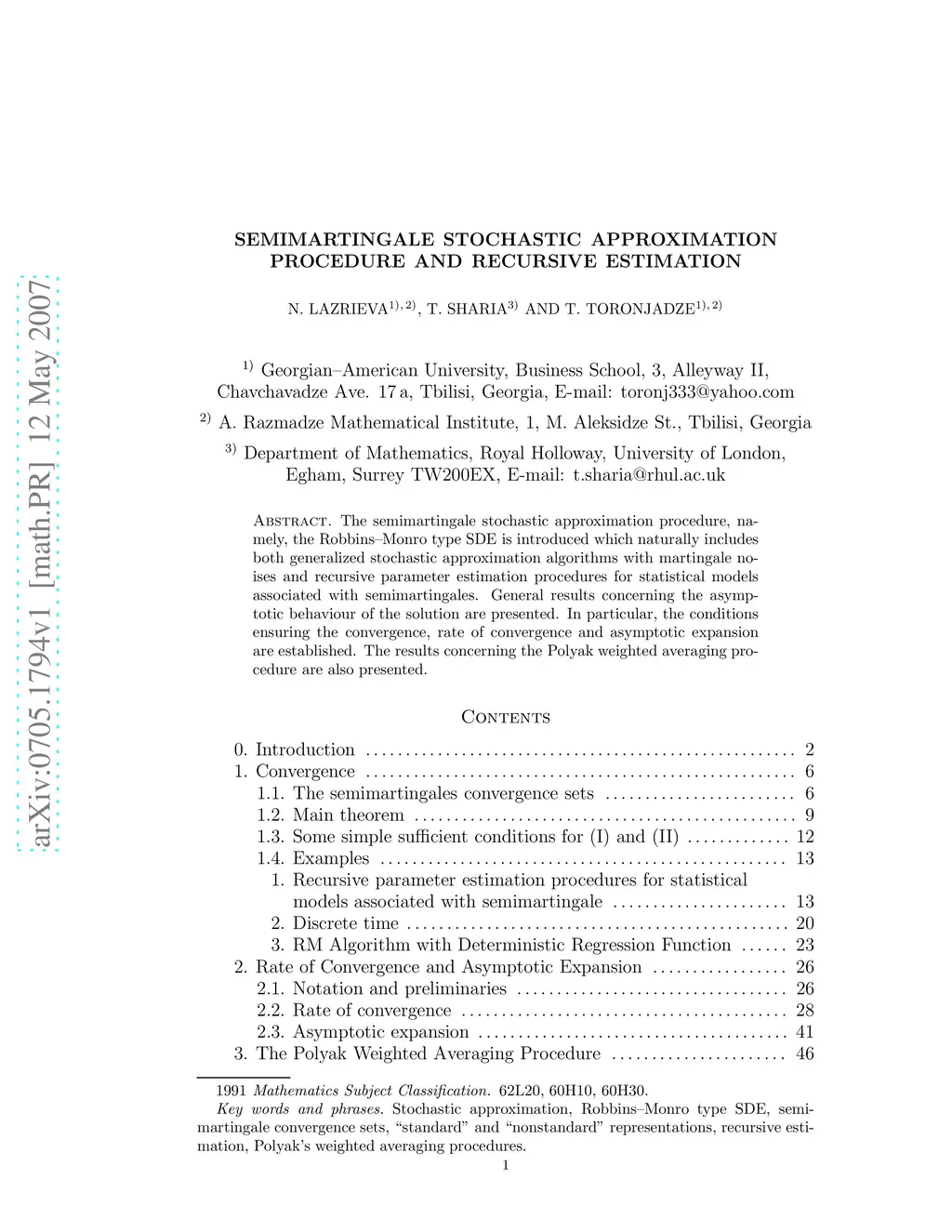 The semimartingale stochastic approximation procedure, namely, the Robbins-Monro type SDE is introduced which naturally includes both generalized stochastic approximation algorithms with martingale noises and recursive parameter estimation procedures for statistical models associated with semimartingales. General results concerning the asymptotic behaviour of the solution are presented. In particular, the conditions ensuring the convergence, rate of convergence and asymptotic expansion are established. The results concerning the Polyak weighted averaging procedure are also presented.