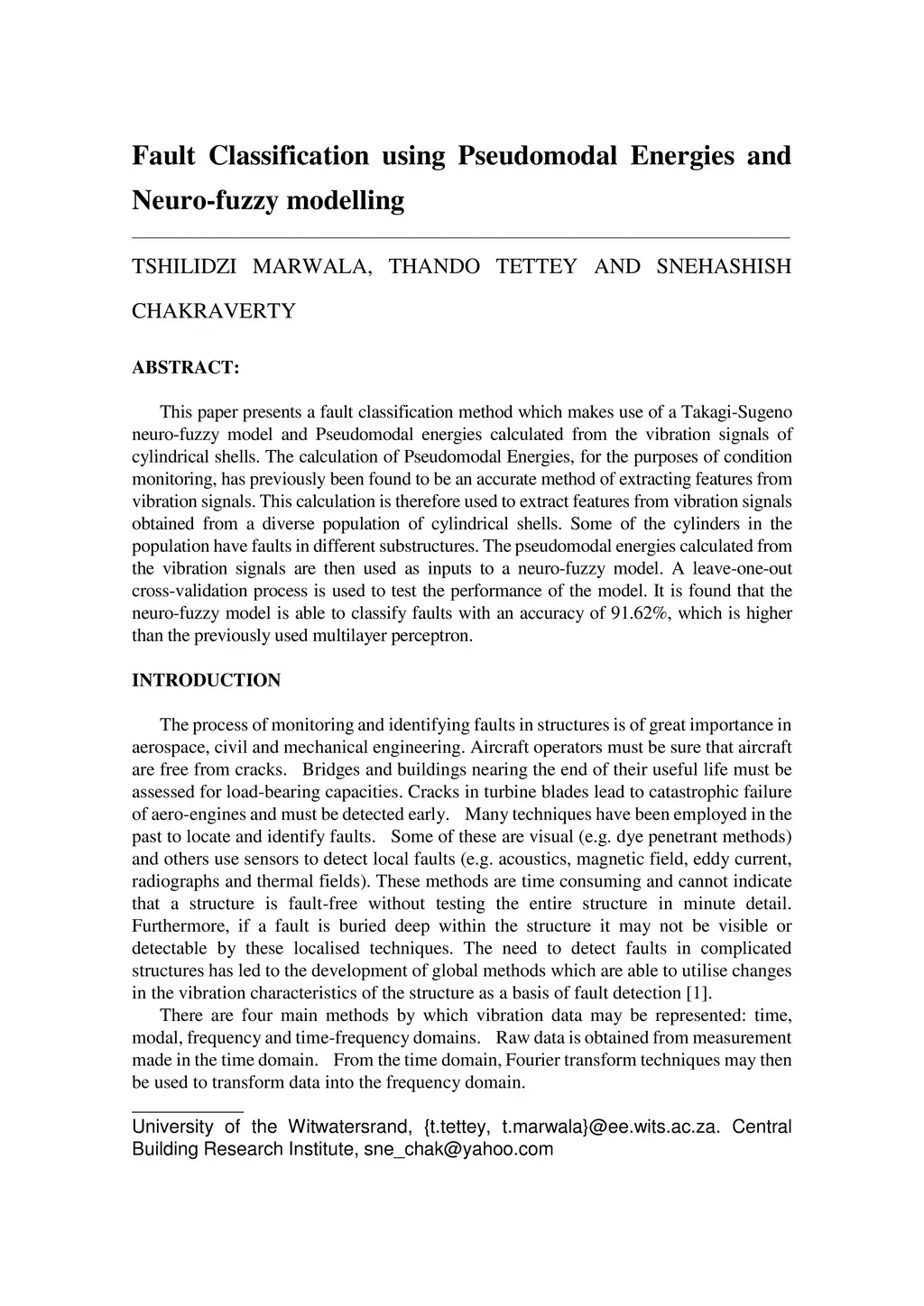 Fault Classification using Pseudomodal Energies and Neuro-fuzzy