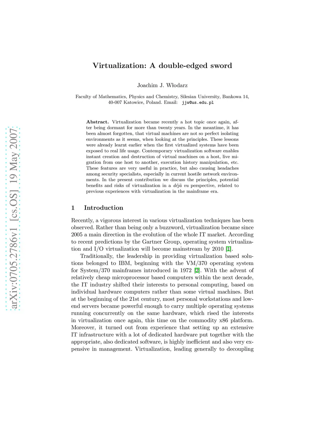Virtualization became recently a hot topic once again, after being dormant for more than twenty years. In the meantime, it has been almost forgotten, that virtual machines are not so perfect isolating environments as it seems, when looking at the principles. These lessons were already learnt earlier when the first virtualized systems have been exposed to real life usage. Contemporary virtualization software enables instant creation and destruction of virtual machines on a host, live migration from one host to another, execution history manipulation, etc. These features are very useful in practice, but also causing headaches among security specialists, especially in current hostile network environments. In the present contribution we discuss the principles, potential benefits and risks of virtualization in a deja vu perspective, related to previous experiences with virtualization in the mainframe era.