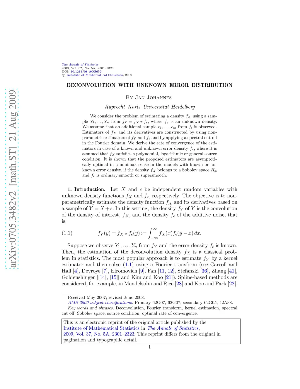 We consider the problem of estimating a density using a sample from , where is an unknown density. We assume that an additional sample from is observed. Estimators of and its derivatives are constructed by using nonparametric estimators of and and by applying a spectral cut-off in the Fourier domain. We derive the rate of convergence of the estimators in case of a known and unknown error density , where it is assumed that satisfies a polynomial, logarithmic or general source condition. It is shown that the proposed estimators are asymptotically optimal in a minimax sense in the models with known or unknown error density, if the density belongs to a Sobolev space and is ordinary smooth or supersmooth.