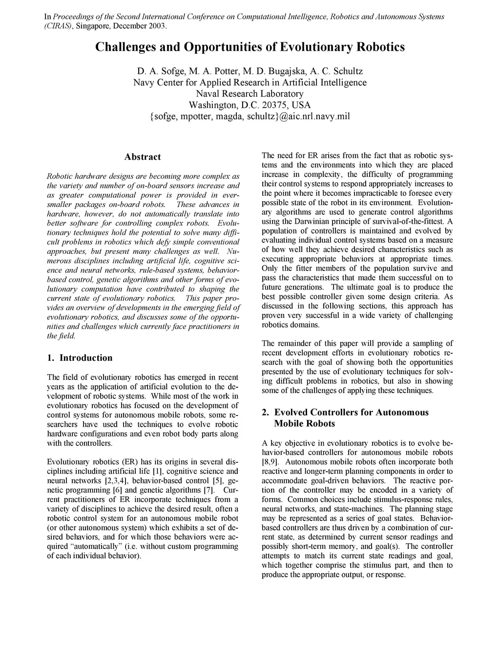 Challenges and Opportunities of Evolutionary Robotics