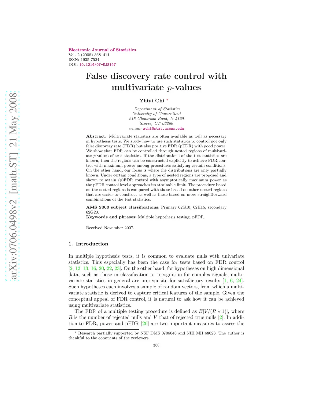 Multivariate statistics are often available as well as necessary in hypothesis tests. We study how to use such statistics to control not only false discovery rate (FDR) but also positive FDR (pFDR) with good power. We show that FDR can be controlled through nested regions of multivariate -values of test statistics. If the distributions of the test statistics are known, then the regions can be constructed explicitly to achieve FDR control with maximum power among procedures satisfying certain conditions. On the other hand, our focus is where the distributions are only partially known. Under certain conditions, a type of nested regions are proposed and shown to attain (p)FDR control with asymptotically maximum power as the pFDR control level approaches its attainable limit. The procedure based on the nested regions is compared with those based on other nested regions that are easier to construct as well as those based on more straightforward combinations of the test statistics.
