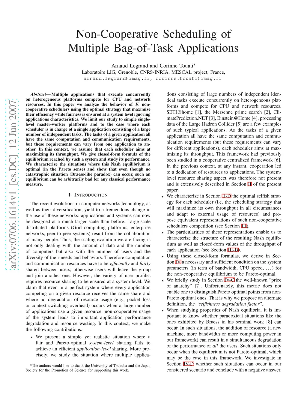 Non-Cooperative Scheduling of Multiple Bag-of-Task Applications