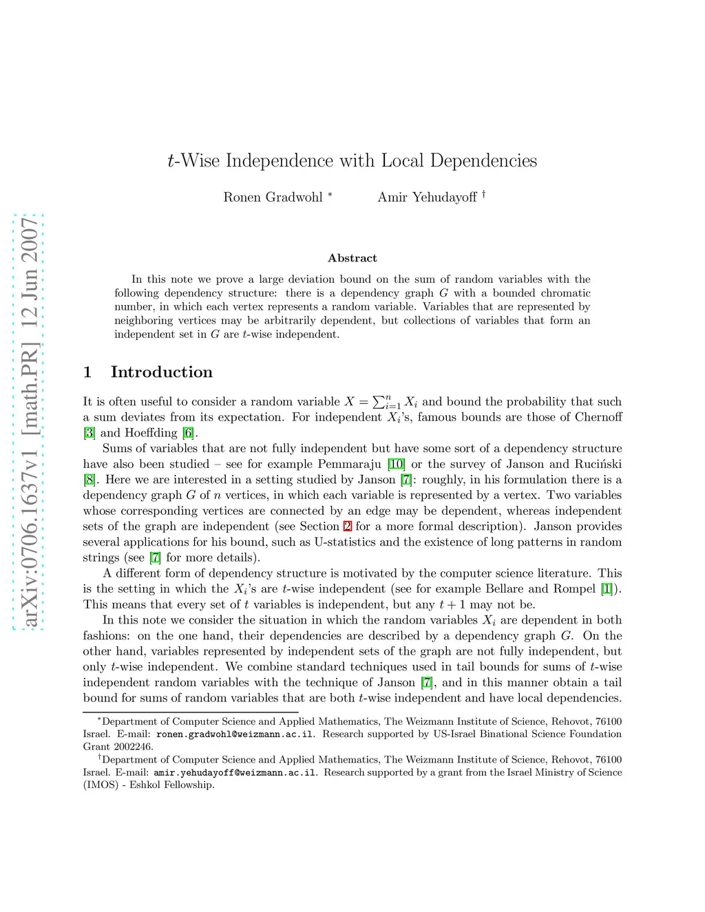In this note we prove a large deviation bound on the sum of random variables with the following dependency structure: there is a dependency graph with a bounded chromatic number, in which each vertex represents a random variable. Variables that are represented by neighboring vertices may be arbitrarily dependent, but collections of variables that form an independent set in are -wise independent.
