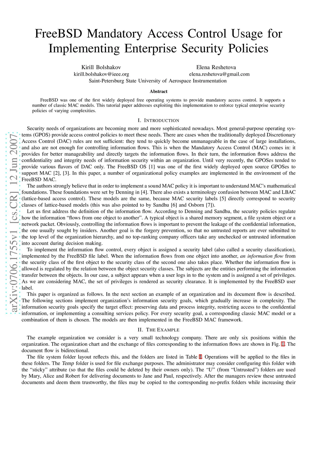 FreeBSD Mandatory Access Control Usage for Implementing Enterprise