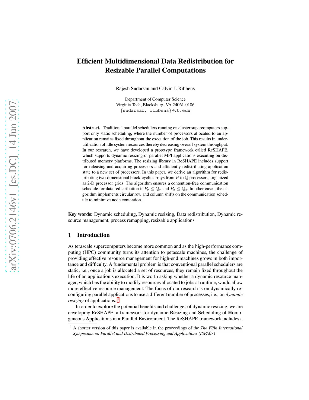 Efficient Multidimensional Data Redistribution for Resizable Parallel
