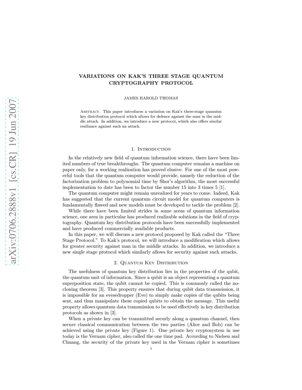 Variations on Kak's Three Stage Quantum Cryptography Protocol