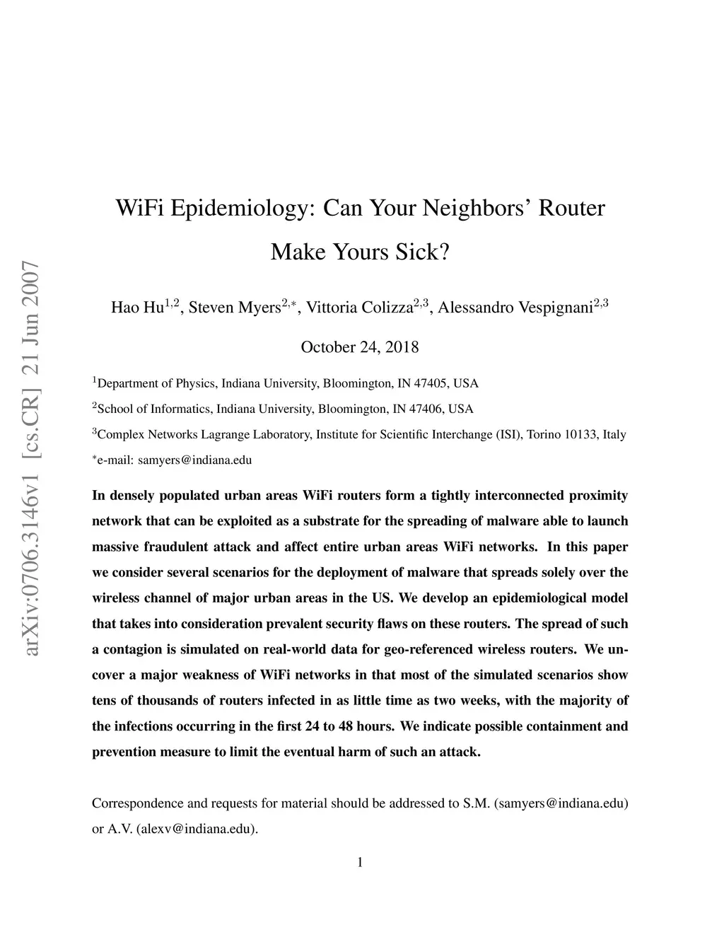 WiFi Epidemiology: Can Your Neighbors' Router Make Yours Sick?