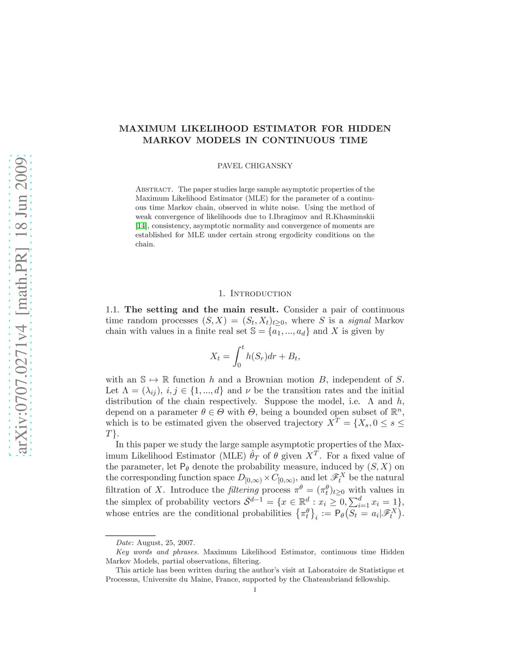 Maximum Likelihood Estimator for Hidden Markov Models in continuous time