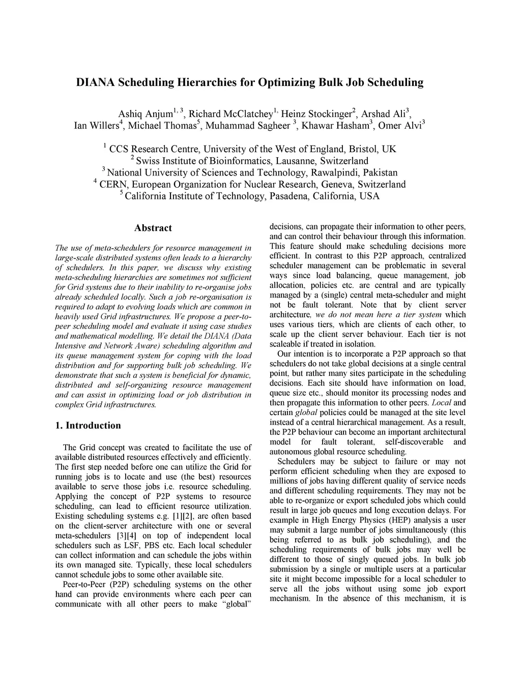 DIANA Scheduling Hierarchies for Optimizing Bulk Job Scheduling