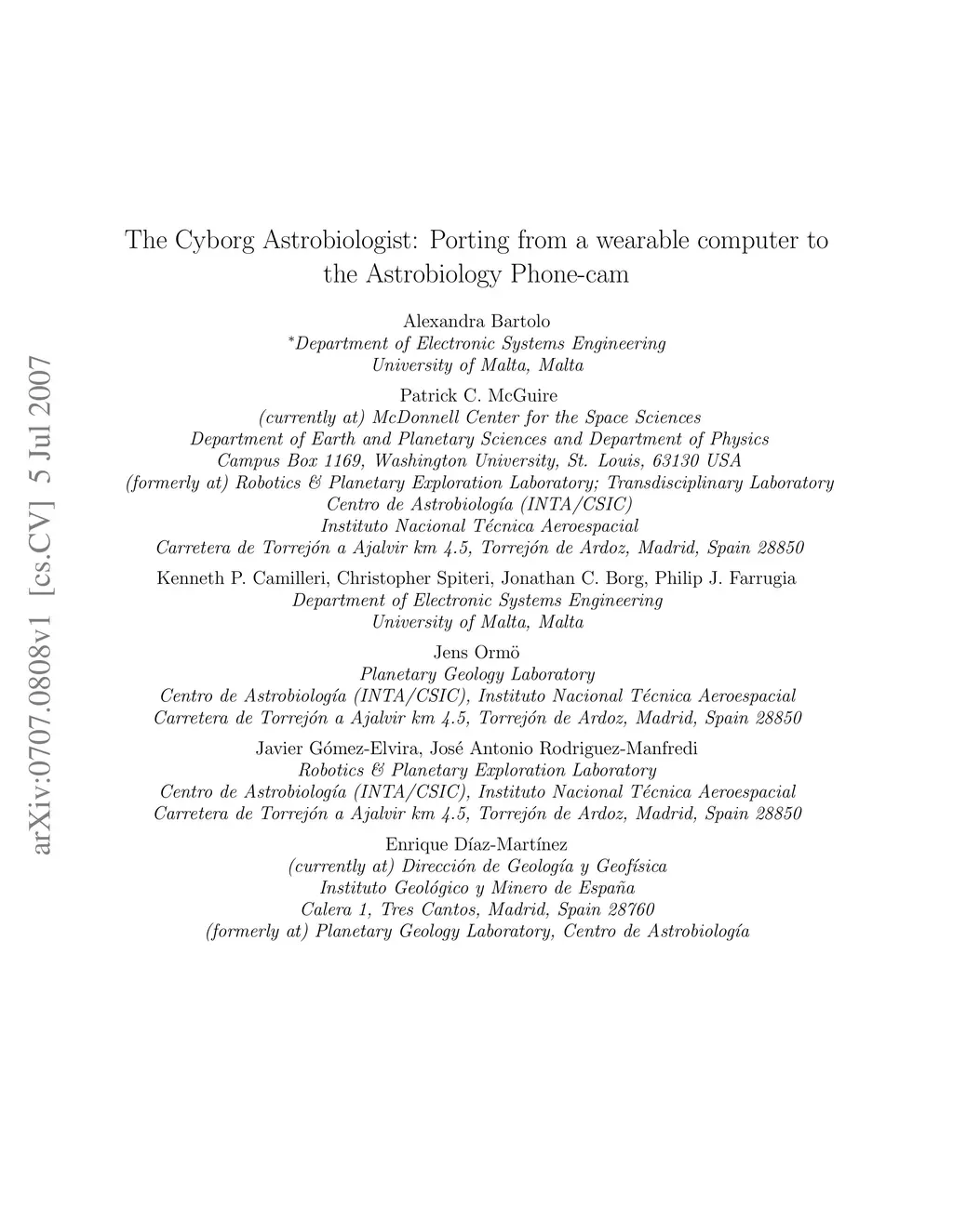 International Journal of Astrobiology (JA), 2007