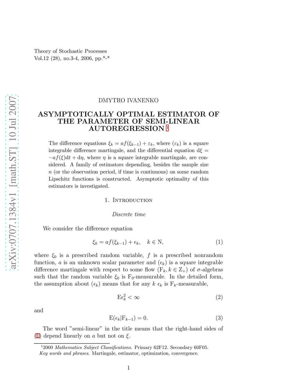 The difference equations , where is a square integrable difference martingale, and the differential equation , where is a square integrable martingale, are considered. A family of estimators depending, besides the sample size (or the observation period, if time is continuous) on some random Lipschitz functions is constructed. Asymptotic optimality of this estimators is investigated.
