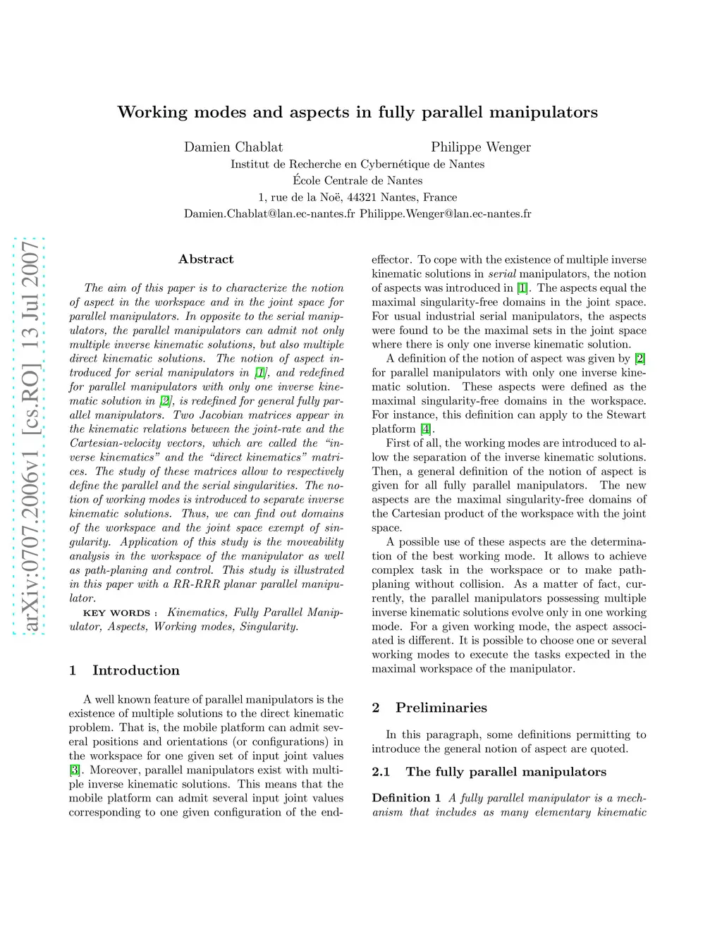 Working Modes and Aspects in Fully-Parallel Manipulator