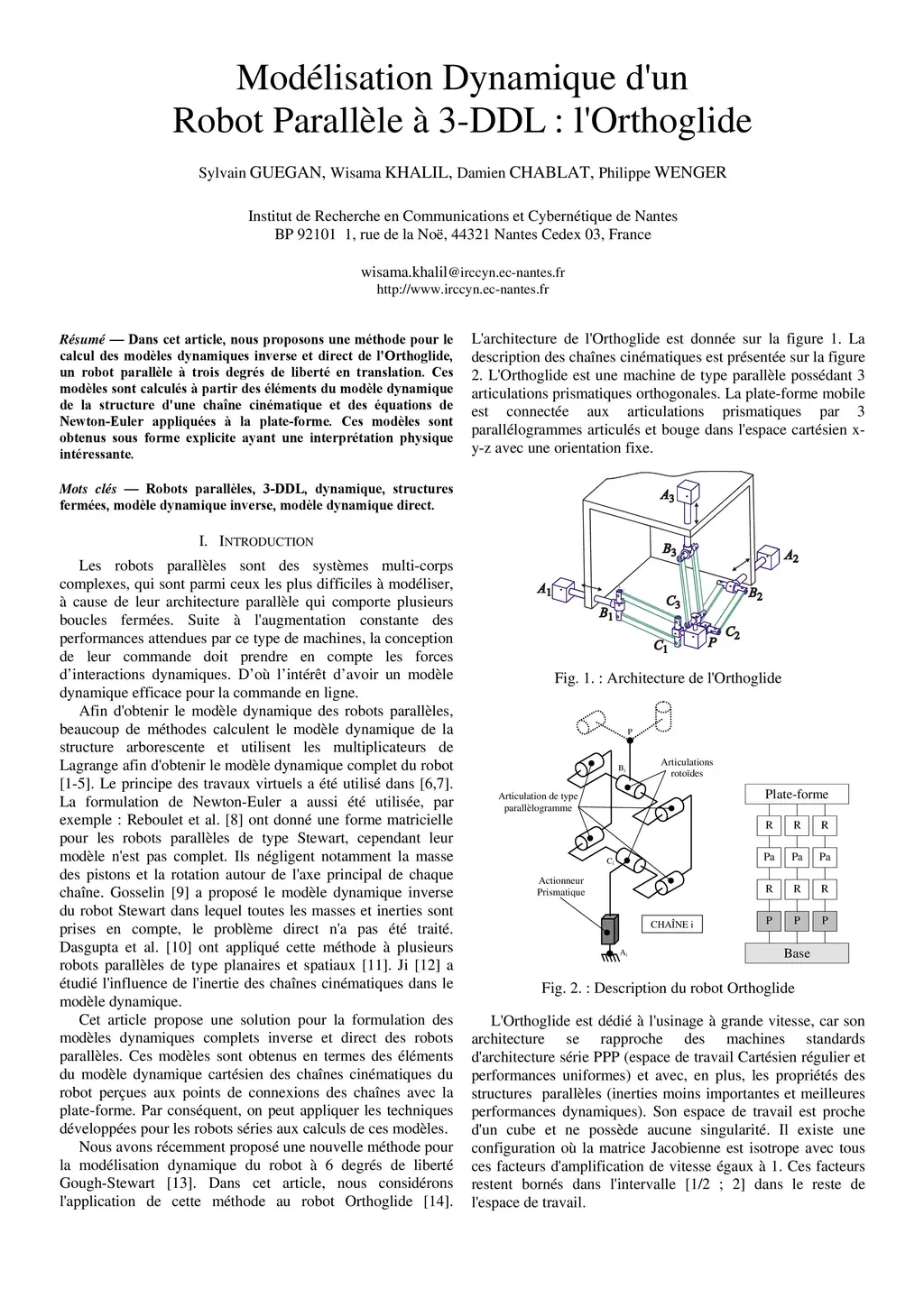 Modélisation Dynamique dún Robot Parallèle à 3-DDL : lÓrthoglide