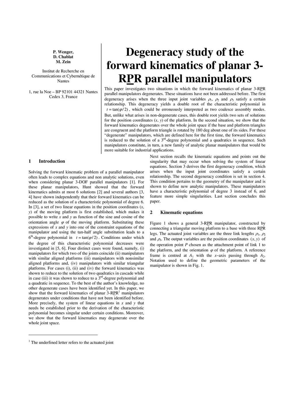 This paper investigates two situations in which the forward kinematics of planar 3-RPR parallel manipulators degenerates. These situations have not been addressed before. The first degeneracy arises when the three input joint variables r1, r2 and r3 satisfy a certain relationship. This degeneracy yields a double root of the characteristic polynomial in t, which could be erroneously interpreted as two coalesce assembly modes. But, unlike what arises in non-degenerate cases, this double root yields two sets of solutions for the position coordinates (x, y) of the platform. In the second situation, we show that the forward kinematics degenerates over the whole joint space if the base and platform triangles are congruent and the platform triangle is rotated by 180 deg about one of its sides. For these "degenerate" manipulators, which are defined here for the first time, the forward kinematics is reduced to the solution of a 3rd-degree polynomial and a quadratics in sequence. Such manipulators constitute, in turn, a new family of analytic planar manipulators that would be more suitable for industrial applications.