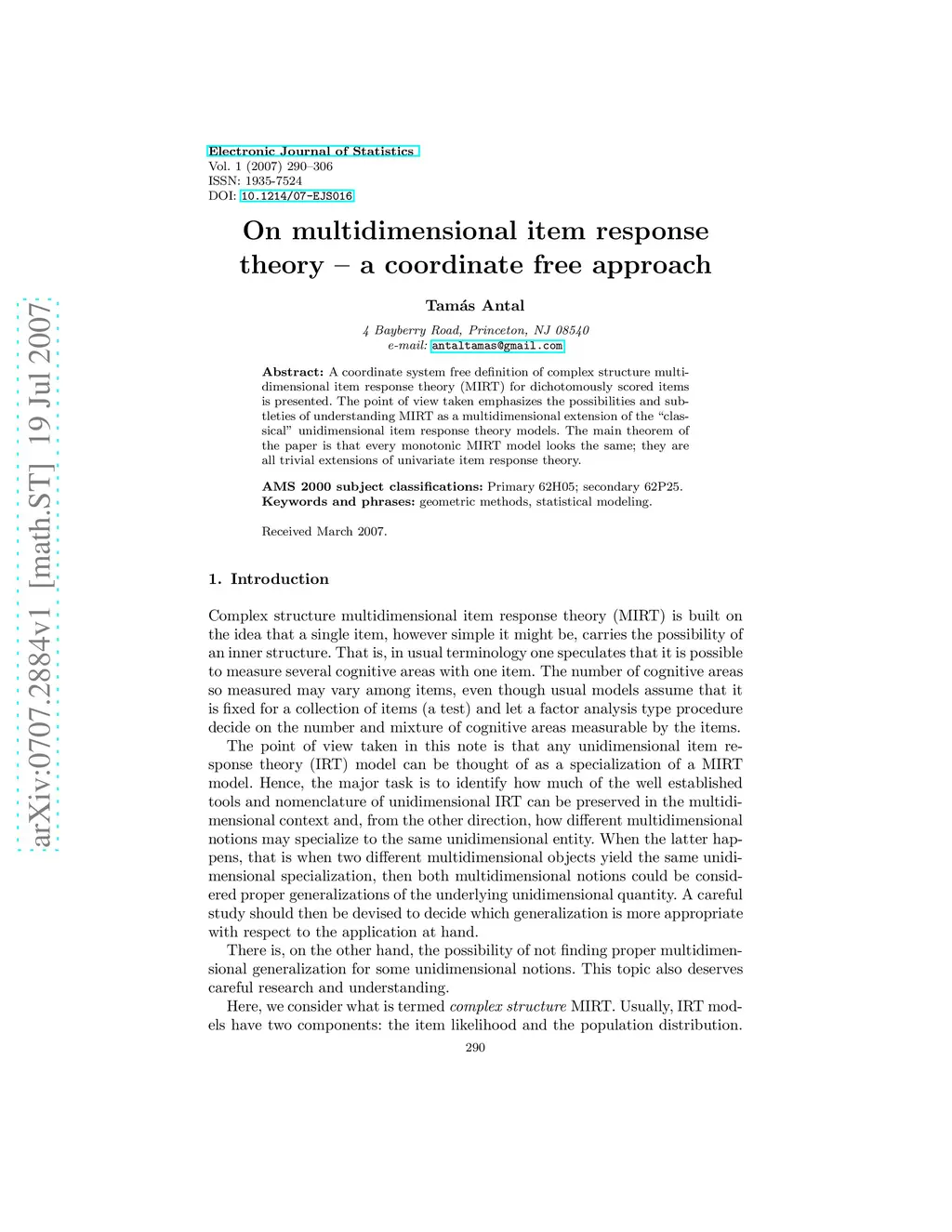 A coordinate system free definition of complex structure multidimensional item response theory (MIRT) for dichotomously scored items is presented. The point of view taken emphasizes the possibilities and subtleties of understanding MIRT as a multidimensional extension of the ``classical'' unidimensional item response theory models. The main theorem of the paper is that every monotonic MIRT model looks the same; they are all trivial extensions of univariate item response theory.
