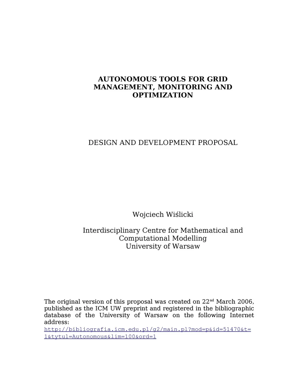 We outline design and lines of development of autonomous tools for the computing Grid management, monitoring and optimization. The management is proposed to be based on the notion of utility. Grid optimization is considered to be application-oriented. A generic Grid simulator is proposed as an optimization tool for Grid structure and functionality.