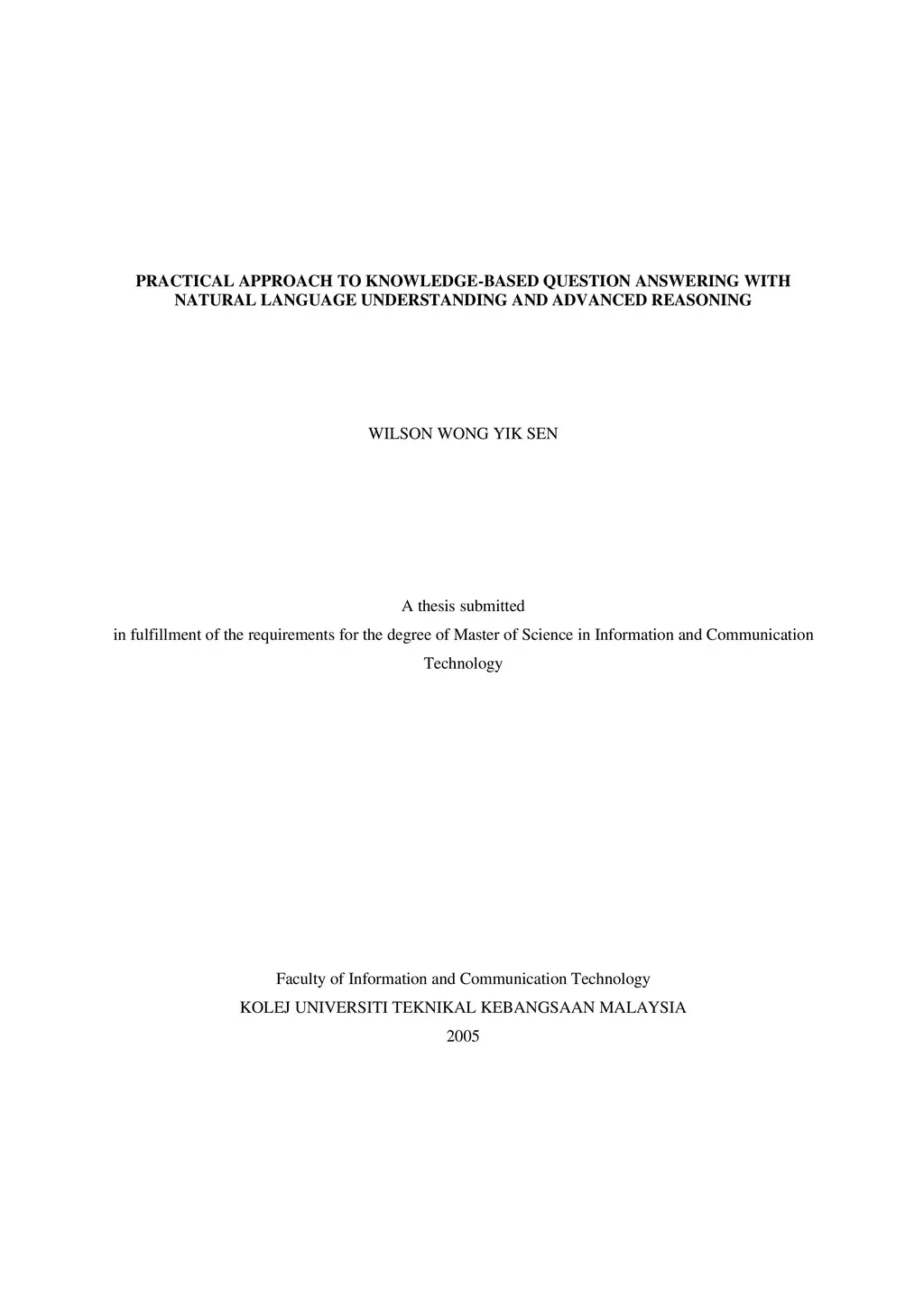 This research hypothesized that a practical approach in the form of a solution framework known as Natural Language Understanding and Reasoning for Intelligence (NaLURI), which combines full-discourse natural language understanding, powerful representation formalism capable of exploiting ontological information and reasoning approach with advanced features, will solve the following problems without compromising practicality factors: 1) restriction on the nature of question and response, and 2) limitation to scale across domains and to real-life natural language text.
