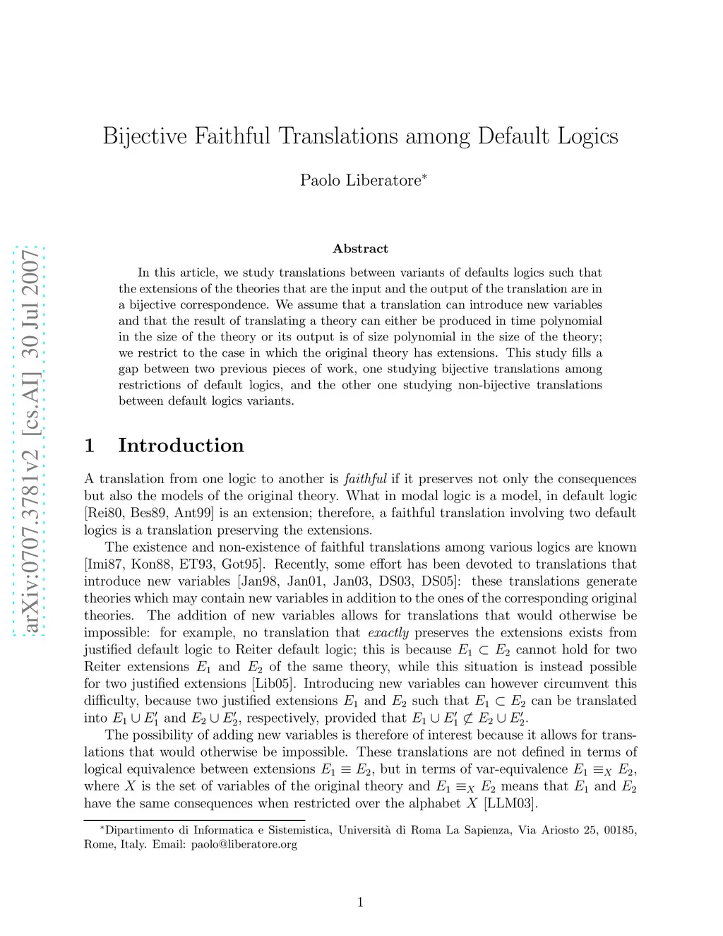 Bijective Faithful Translations among Default Logics