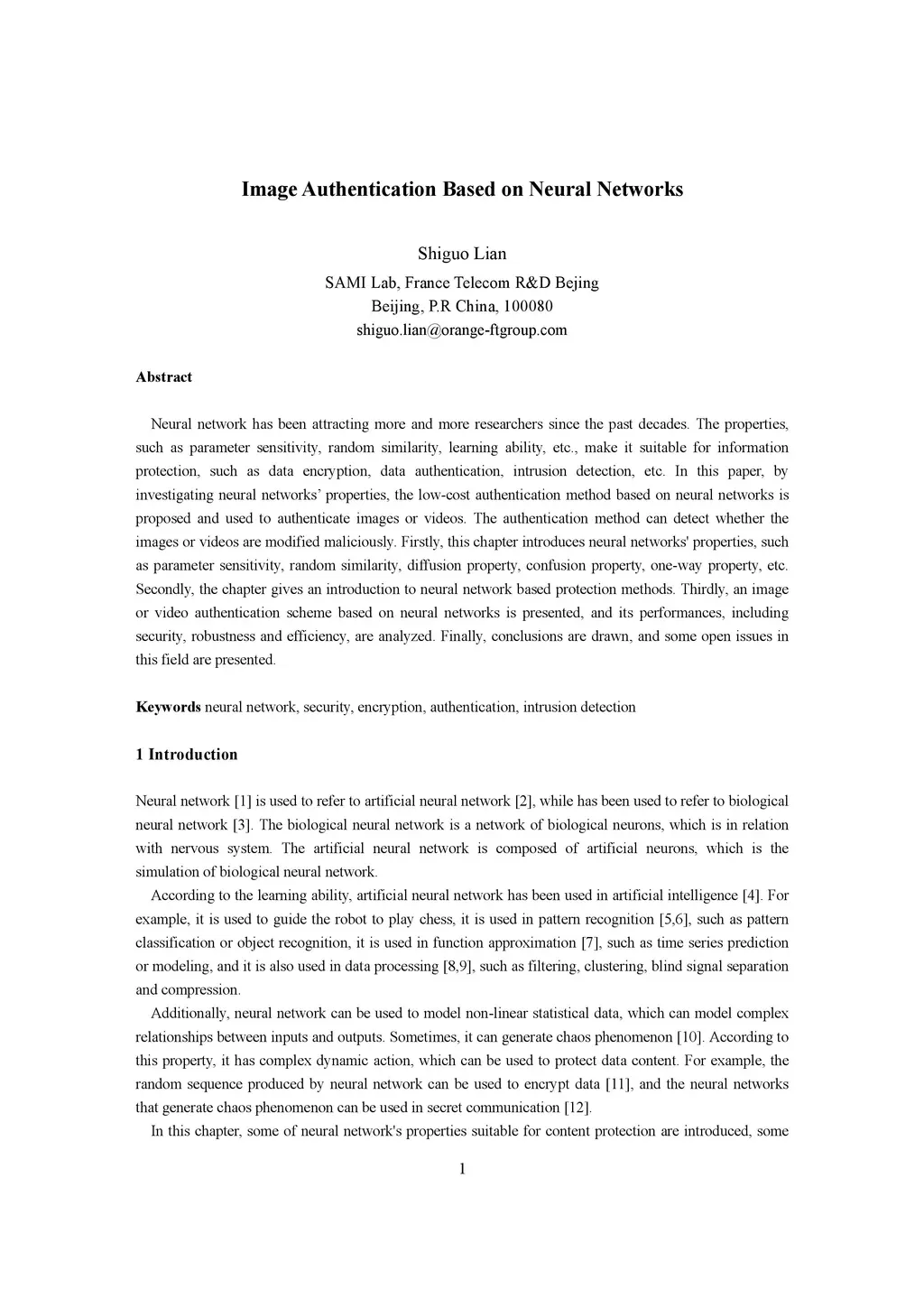 Neural network has been attracting more and more researchers since the past decades. The properties, such as parameter sensitivity, random similarity, learning ability, etc., make it suitable for information protection, such as data encryption, data authentication, intrusion detection, etc. In this paper, by investigating neural networks' properties, the low-cost authentication method based on neural networks is proposed and used to authenticate images or videos. The authentication method can detect whether the images or videos are modified maliciously. Firstly, this chapter introduces neural networks' properties, such as parameter sensitivity, random similarity, diffusion property, confusion property, one-way property, etc. Secondly, the chapter gives an introduction to neural network based protection methods. Thirdly, an image or video authentication scheme based on neural networks is presented, and its performances, including security, robustness and efficiency, are analyzed. Finally, conclusions are drawn, and some open issues in this field are presented.