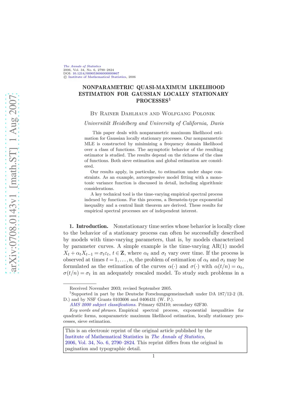 This paper deals with nonparametric maximum likelihood estimation for Gaussian locally stationary processes. Our nonparametric MLE is constructed by minimizing a frequency domain likelihood over a class of functions. The asymptotic behavior of the resulting estimator is studied. The results depend on the richness of the class of functions. Both sieve estimation and global estimation are considered. Our results apply, in particular, to estimation under shape constraints. As an example, autoregressive model fitting with a monotonic variance function is discussed in detail, including algorithmic considerations. A key technical tool is the time-varying empirical spectral process indexed by functions. For this process, a Bernstein-type exponential inequality and a central limit theorem are derived. These results for empirical spectral processes are of independent interest.