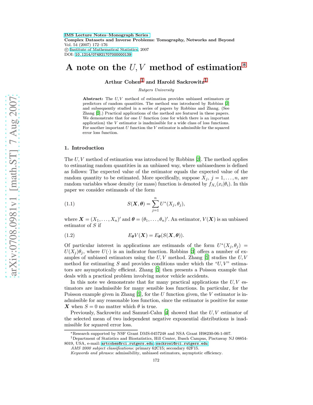 A note on the U,V method of estimation