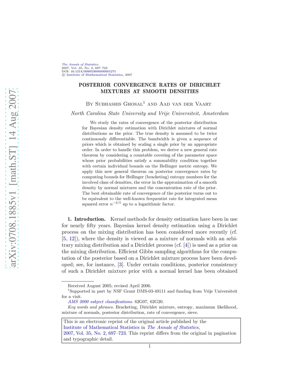We study the rates of convergence of the posterior distribution for Bayesian density estimation with Dirichlet mixtures of normal distributions as the prior. The true density is assumed to be twice continuously differentiable. The bandwidth is given a sequence of priors which is obtained by scaling a single prior by an appropriate order. In order to handle this problem, we derive a new general rate theorem by considering a countable covering of the parameter space whose prior probabilities satisfy a summability condition together with certain individual bounds on the Hellinger metric entropy. We apply this new general theorem on posterior convergence rates by computing bounds for Hellinger (bracketing) entropy numbers for the involved class of densities, the error in the approximation of a smooth density by normal mixtures and the concentration rate of the prior. The best obtainable rate of convergence of the posterior turns out to be equivalent to the well-known frequentist rate for integrated mean squared error up to a logarithmic factor.