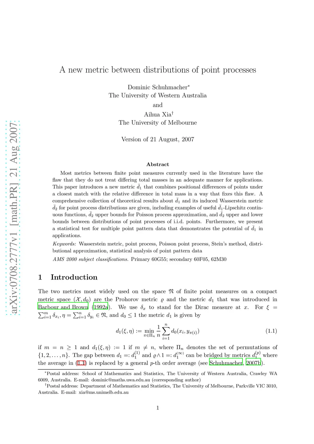 A new metric between distributions of point processes