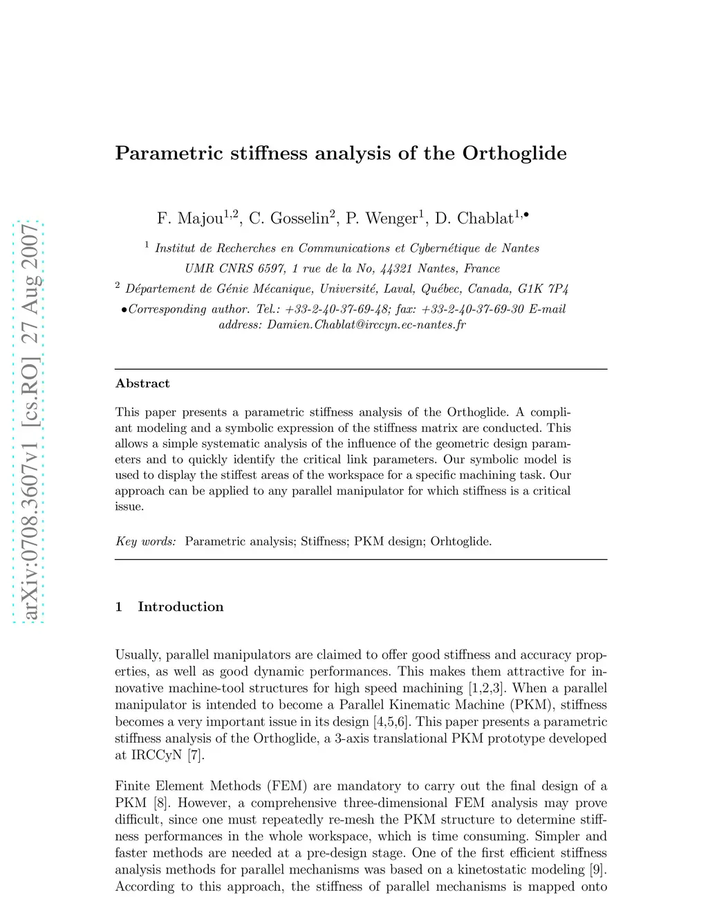 This paper presents a parametric stiffness analysis of the Orthoglide. A compliant modeling and a symbolic expression of the stiffness matrix are conducted. This allows a simple systematic analysis of the influence of the geometric design parameters and to quickly identify the critical link parameters. Our symbolic model is used to display the stiffest areas of the workspace for a specific machining task. Our approach can be applied to any parallel manipulator for which stiffness is a critical issue.