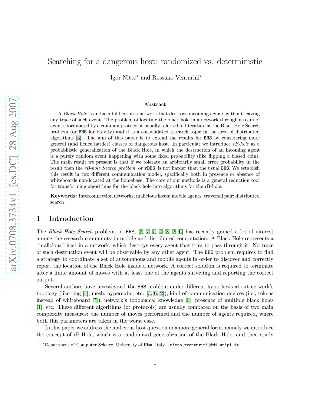 A Black Hole is an harmful host in a network that destroys incoming agents without leaving any trace of such event. The problem of locating the black hole in a network through a team of agent coordinated by a common protocol is usually referred in literature as the Black Hole Search problem (or BHS for brevity) and it is a consolidated research topic in the area of distributed algorithms. The aim of this paper is to extend the results for BHS by considering more general (and hence harder) classes of dangerous host. In particular we introduce rB-hole as a probabilistic generalization of the Black Hole, in which the destruction of an incoming agent is a purely random event happening with some fixed probability (like flipping a biased coin). The main result we present is that if we tolerate an arbitrarily small error probability in the result then the rB-hole Search problem, or RBS, is not harder than the usual BHS. We establish this result in two different communication model, specifically both in presence or absence of whiteboards non-located at the homebase. The core of our methods is a general reduction tool for transforming algorithms for the black hole into algorithms for the rB-hole.