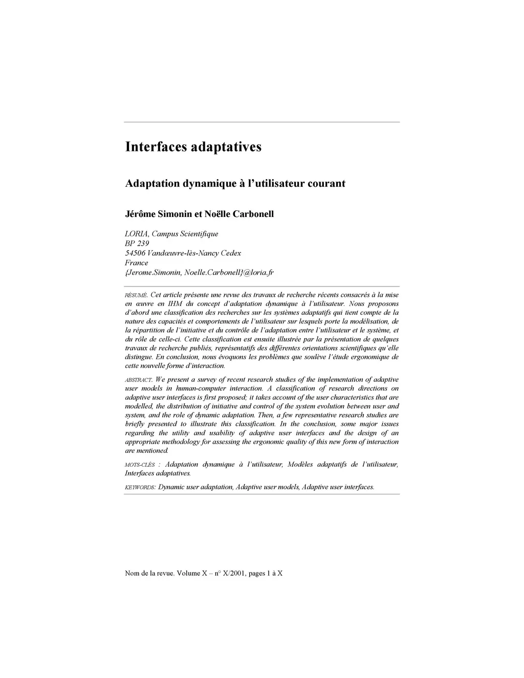 Interfaces adaptatives Adaptation dynamique à lútilisateur courant