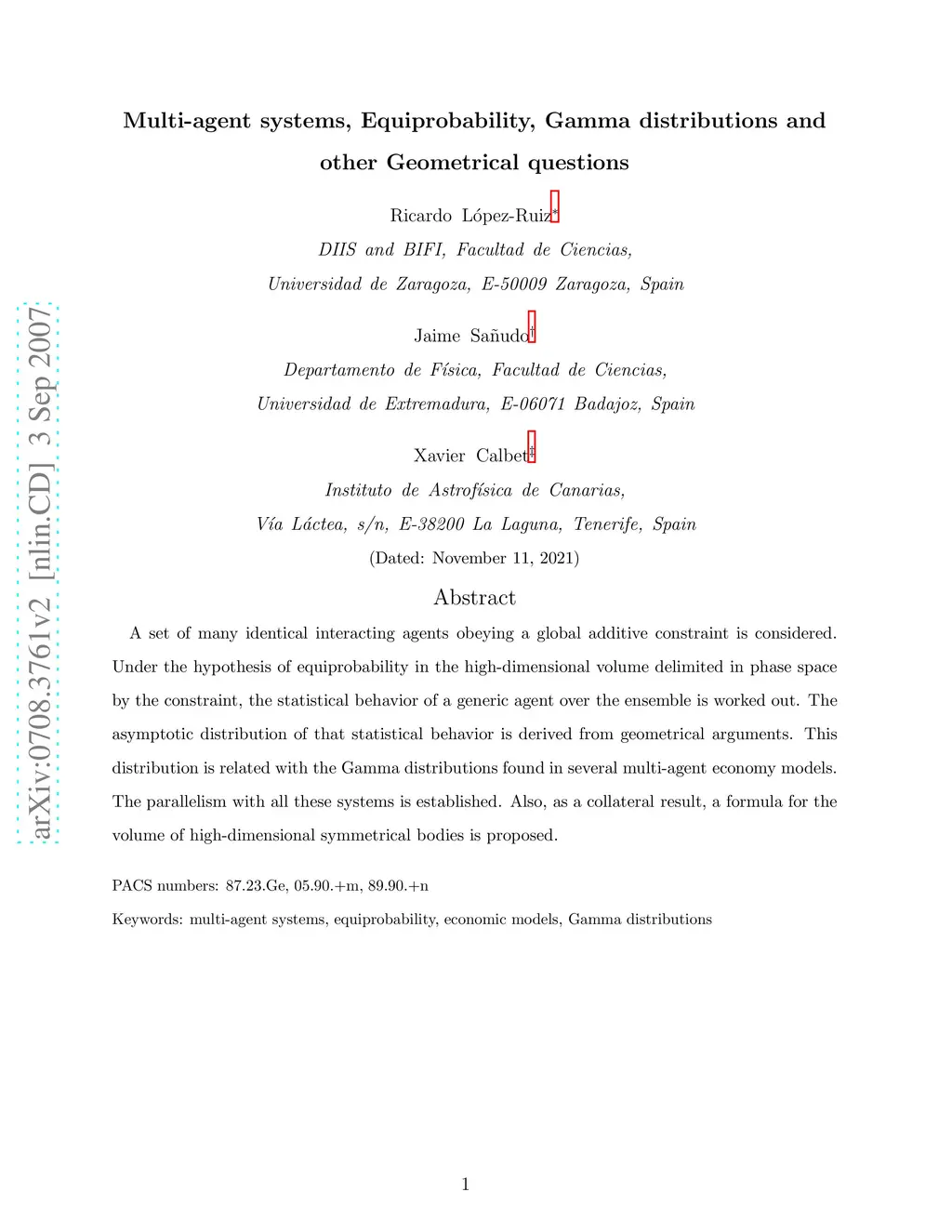 Multi-agent systems, Equiprobability, Gamma distributions and other