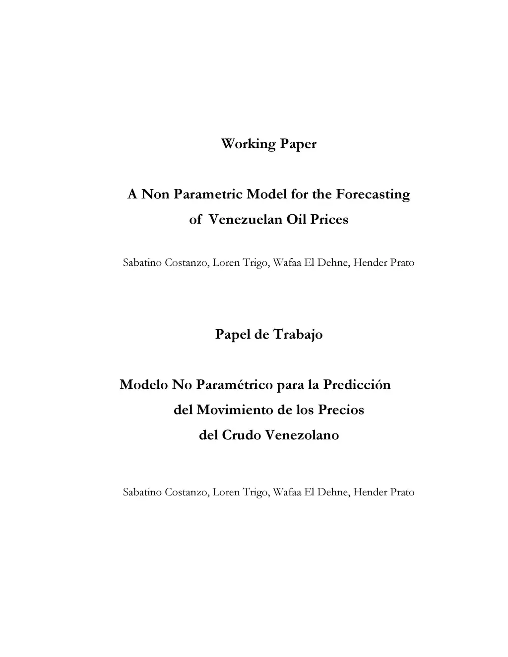 A Non Parametric Model for the Forecasting of the Venezuelan Oil Prices