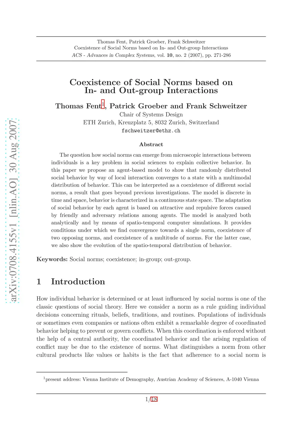 The question how social norms can emerge from microscopic interactions between individuals is a key problem in social sciences to explain collective behavior. In this paper we propose an agent-based model to show that randomly distributed social behavior by way of local interaction converges to a state with a multimodal distribution of behavior. This can be interpreted as a coexistence of different social norms, a result that goes beyond previous investigations. The model is discrete in time and space, behavior is characterized in a continuous state space. The adaptation of social behavior by each agent is based on attractive and repulsive forces caused by friendly and adversary relations among agents. The model is analyzed both analytically and by means of spatio-temporal computer simulations. It provides conditions under which we find convergence towards a single norm, coexistence of two opposing norms, and coexistence of a multitude of norms. For the latter case, we also show the evolution of the spatio-temporal distribution of behavior.