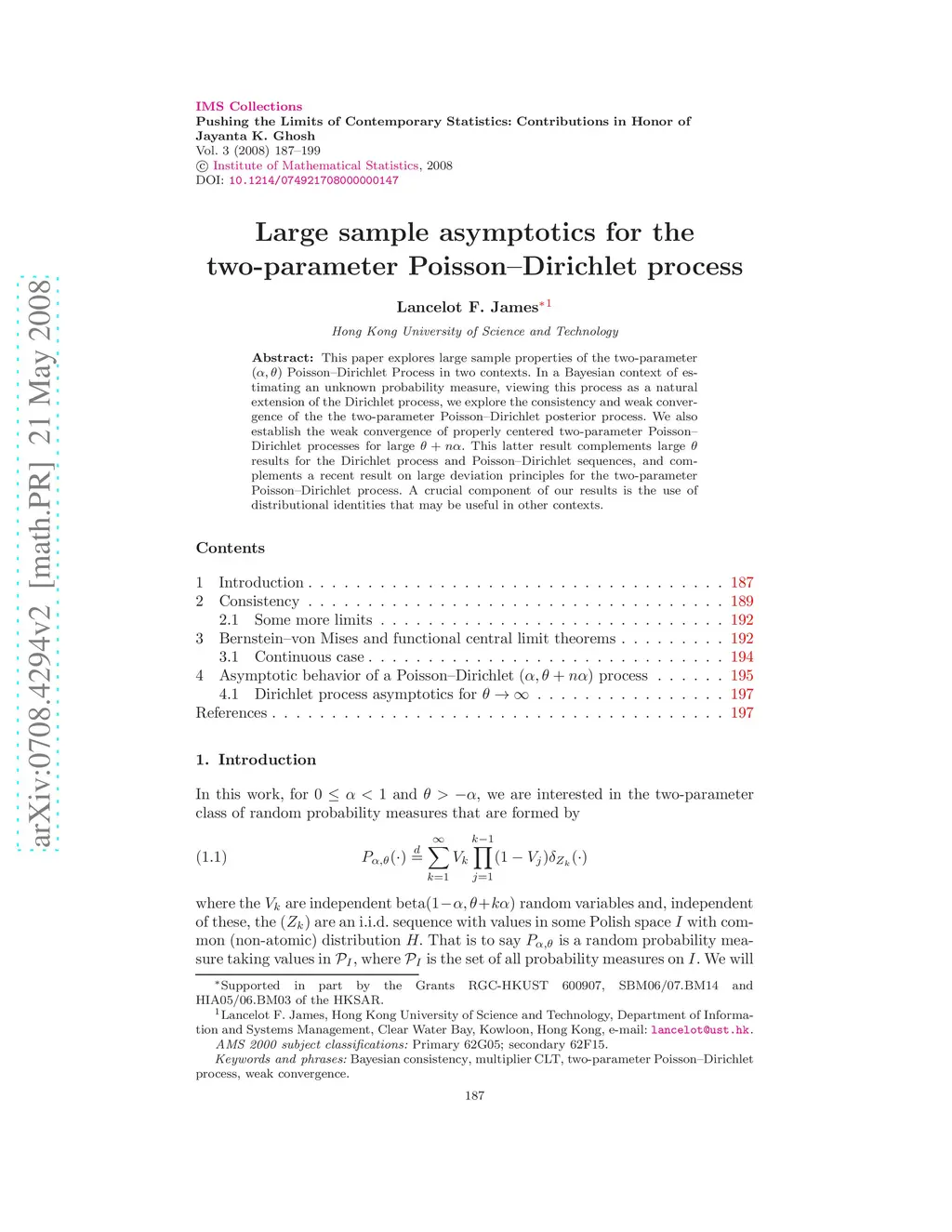 This paper explores large sample properties of the two-parameter Poisson--Dirichlet Process in two contexts. In a Bayesian context of estimating an unknown probability measure, viewing this process as a natural extension of the Dirichlet process, we explore the consistency and weak convergence of the the two-parameter Poisson--Dirichlet posterior process. We also establish the weak convergence of properly centered two-parameter Poisson--Dirichlet processes for large This latter result complements large results for the Dirichlet process and Poisson--Dirichlet sequences, and complements a recent result on large deviation principles for the two-parameter Poisson--Dirichlet process. A crucial component of our results is the use of distributional identities that may be useful in other contexts.
