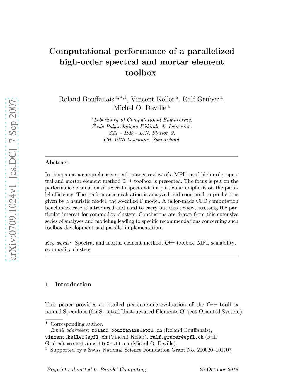 Computational performance of a parallelized high-order spectral and