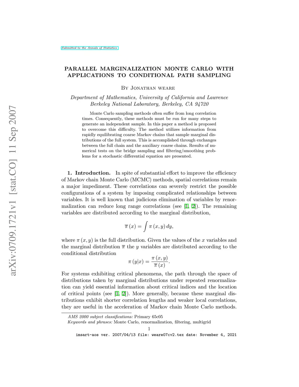 Parallel marginalization Monte Carlo with applications to conditional