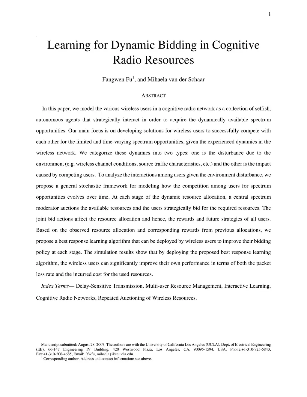 Learning for Dynamic Bidding in Cognitive Radio Resources