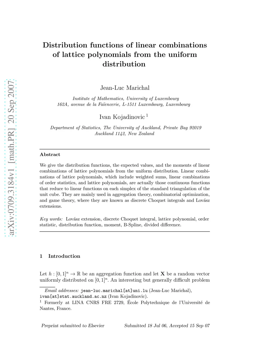 Distribution functions of linear combinations of lattice polynomials