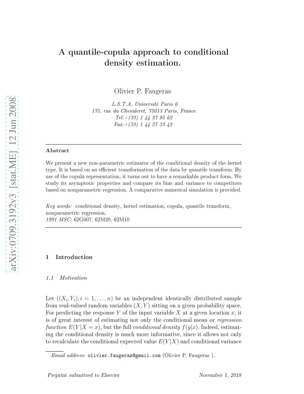 Journal of Multivariate Analysis (JMA), 2007